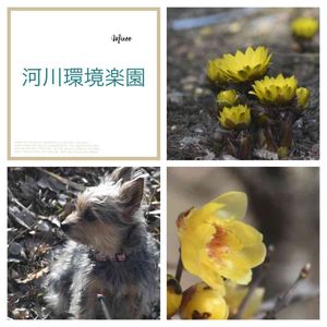 ワンワン祭り参加します🐶 一昨日のお休みに、 愛犬リコと河川環境楽園へ 春の訪れを感じさせるお花 福寿草と蝋梅がビタミンカラーで素敵💛 リコもお散歩楽しそう❣️