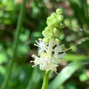 シロバナツルボちゃん ピンクと一緒におはよう❣️ なのですが、ピンクはすごく大きくなって、写真に収まらないの〜😅 かわいい💕