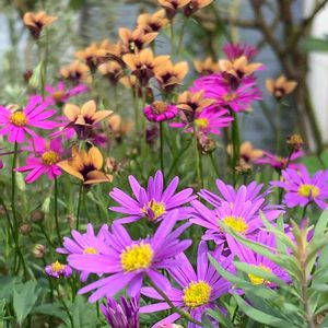 ブラキカムとこのお花名前忘れた〜❣️ 去年の秋の寄せ植えが今ももりもり咲いてくれます。 嬉しいけど、きっと根っこはキュンキュンね😉 8を1回り大きくしてあげなくちゃ この頃、季節を超えて咲いてくれるお花が増えて嬉しいなぁ💕