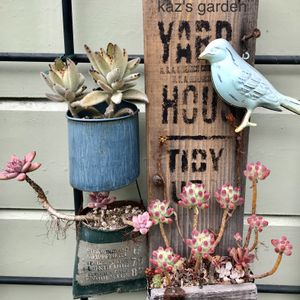 乙女心ポッと❤️可愛い ボードの寄せ植え乙女だけが残った 頑張れ乙女ちゃん♡🙌