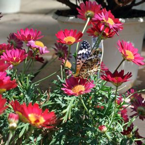 ボンザマーガレット & ツマグロヒョウモン🦋 (5/4) ボンザマーガレットにお客様です。 まだ、切戻ししないでくださいと言っているようです。🔶🔷🔶