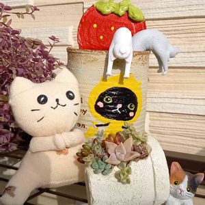皆さんの投稿で気がつきました😄 🏷️ニャンニャン祭り🏷️ ぷりまみちゃんのリメ缶、まだ何も植えていないのでクニさんから頂いた猫ブリッジを。 まつぴよさんのソクネコちゃん。 ニャンコ😺鉢にチマチマ寄せてみました~❣️ ただいま、多肉の植え替え作業中 モギモギしてたら、大変‼️ 葉挿しがたくさんだよ~😅💦💦