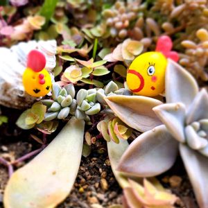 朧月の葉っぱポイポイしてたら 小さい葉っぱが出ていました☺️ 月の雫ちゃんとみちゃさん作🐔も 大喜び❤️ 🏷️毎月13日と14日は葉挿しの日