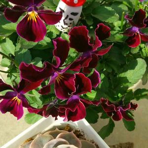 ブルーサプライズで 🏷️ド真ん中の日 ビオラの鉢のド真ん中には 変なオジサン🍄が😑💧
