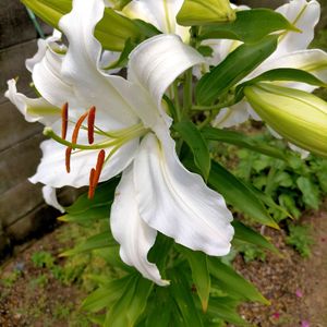 梅雨の晴れ間にお庭に出たらカサブランカが咲いていました✨ 大輪の花はすごい存在感! 昨年からの植えっぱなしですが、昨年よりさらに背が高くなって花も増えている気がします😳 2枚目は花束でもらったカーネーションを挿し木にしてさらに地植えにしたもの😄 かわいい花が咲いてくれました︎💕︎︎ 3枚目は寄せ植えに使っていたシルバーナイト。 寄せ植えを解体して切り戻したのですが、また花が咲いてきました。 水色だったのがだいぶ白くなっています🤔