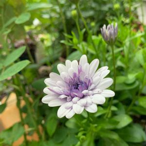 GSで一目惚れした😍オステオスペルマム🍀 多湿に弱いので、この梅雨時期軒下に。 順調につぼみも出てきたぞ!と思ったら、このお花も根が鉢からのびて地面にしがみついていました。