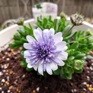 メタリックなシルバーに惹かれて お迎えしたオステオスペルマム 弱りかけていましたが 無事2年目の開花になります