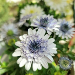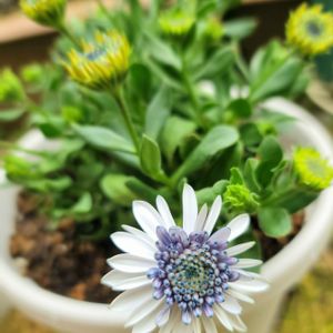 ゲブラナガトヨさん ダブルオステオシルバーナイト 2月24日(金)にお迎えしました✨ お迎えして早くも1ヶ月半 花数も増えてきました😃 日当たりと風通しのよい場所で育てるとけっこう蕾が上がって来ます😅 PICは🌅が昇る頃の5時半頃の撮影したものです😪 今はこのぐらいの時間の方が花色が銀色に輝いて分かりやすいですね🤗