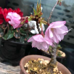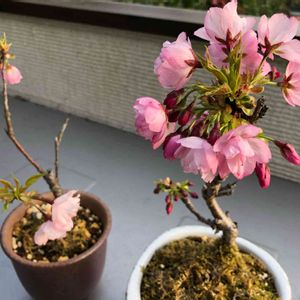 最近、ホームセンターで500円で買った 御殿場桜が満開になりました😀🌸 僕の家では前に一才桜があったけど 僕はまだ盆栽に目覚めてなかったから すぐに枯れてしまい ここ2年は買ってなかったから 不安だったけど咲いてくれたから 嬉しいなぁ😊