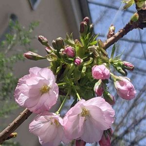 おはようございます。 一昨年は、一才桜旭山 今年は、三才桜に、なりました。 花芽を、みてから長く少し放置していたら、ピンクの花がさいてました。日曜日くらいには、咲いていたような感じですが、咲いてくれて、ありがたいことです。 来年も、花がみられるように頑張って剪定を、少しします。