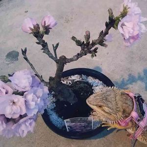 盆栽っぽい桜🌸 ウチのフトアゴヒゲトカゲとお花見🌸(▔罒 ▔ )w