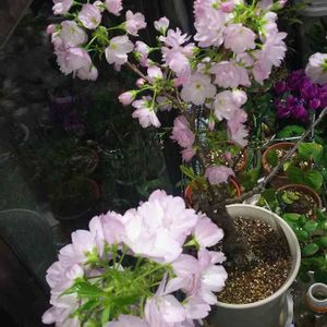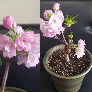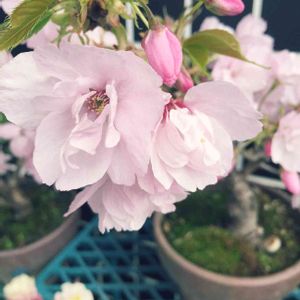 盆栽仕立ての 桜達。 次々に開花 🌸一才桜旭山🌸 か、可愛い💕😍💕 染井吉野は すっかり葉ザクラだけど 時間差で 楽しめて最高⏰