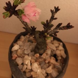 (❁°͈▵°͈)あらま! ひな祭りに貰った一才桜 緑の蕾だったのに もう咲いちゃうぅ🌸 家の中じゃ、はやいなぁ〜(-ε-*)