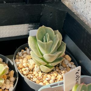 おはようございます☀️ 成長を楽しみにしているメキシカンジャイアント×メンチャカ💗 青みがかった色とお粉具合が大好き💕 大きくな〜れ🎵 気に入った大きめの鉢が見つかるまで植え替え待ち😵💫