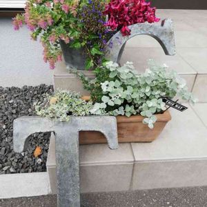 ブリキのアルファベットを置いてみました✨ アイアン、ブリキが好きで少しずつ集めたいと思ってますが、いざ入手すると置き場に悩む〜💦 とりあえず、寄植えに立て掛けて仮置きです(;´∀`) 実は偶然見た某人気ガーデニングブログで紹介されていた物で、ソッコーでお買い上げしていたんですが…風が強かったりで最近まで出しては撤収を繰り返してました😅 TとC、偶然の一致でそのブログの方も同じ2つを飾っていらっしゃいましたが、我が家の息子二人のイニシャルです(;´∀`) 親バカです…(゚∀゚)