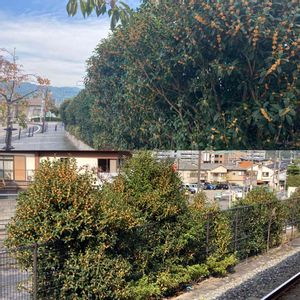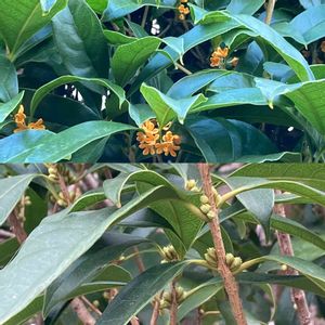 2021.11.1 10時頃の金木犀と銀木犀。 JR宇治駅の北口から写しました。蕾が目一杯膨らみ咲きかけています。 階段を降りる時から香りが漂ってきてこの時節至福の時間です。どうしても投稿が続いてしまいます😄