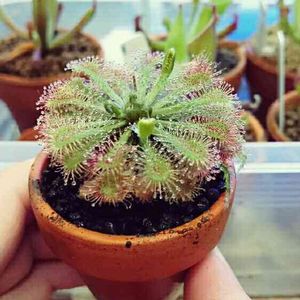 前から欲しかったトウカイモウセンゴケが届いた! 2号ポットなのでめちゃくちゃちっちゃい>< そして、かわええーーー(*≧︎▽︎≦︎)