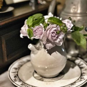 リラ リラはフランス語で英語ではライラック 秋になり濃いめの藤色で咲きました 咲き進んだ状態もきれいで花もち良く手がかからない素敵なバラだと思います ↓以下バラの家公式本店さんより 【名前の由来】 「眠れる森の美女」のオーロラ姫は、16歳で死ぬ呪いを悪い魔法使いにかけられたが、彼女の死を眠りに、絶望を希望に変えたリラの精から。バラの育種で不可能と言われていることも、きっとすべてに希望はあるはずとの思いも込めて。