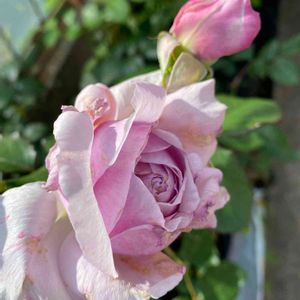 リラ💜ちゃんです ちょっとピンクっぽく写りましたが 実物は藤色フェイスの美人さんです💜 夏剪定後 少しずついろんな薔薇が咲き出し まるで 日々の世話の発表会のよう🌹✨ 綺麗に咲けば嬉しく やり甲斐を感じます♡👩🌾