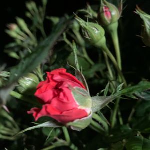 おはようございます😃🌹☁️ 五月晴れといきたいところが こちらは曇り空☁️ にわか雨☂️の予報💦⁉️ 暗闇の中つぼみが開いてますねーコ😸🌹 素敵なゴールデンウィークをお過ごしくださいねーコ😸💕