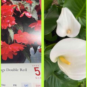 おはようございます😃 今日から5月ですネ❣️ PWで当たった✨カレンダーのお花は💐ベコニア サマーウィング ダブルレッド めちゃきれい😍 カラーが二本咲きました💖