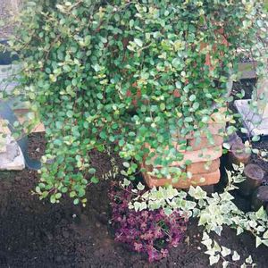 こんにちは🎵 雨が降りだしました☔ 今日も良い一日になります様に。。。💓 今朝、出掛ける前に大きな鉢に植えてあるオーストラリアンローズマリーを思いっきり剪定しました❕🎵 根元のセダムの絨毯に小さな椅子を置き、お気に入りの子たちを植えて、癒され広場の出来上り(笑)😊🎶💕