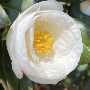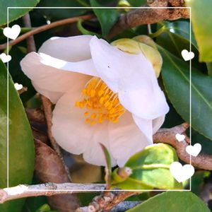 真っ白い椿🌳 散歩道の植栽 1週間前見た時は1、2輪咲いてただけですが、木の全体に豪華に咲いてました♪♪美しい🤩 子供の頃、実家の庭にあったツバキとよく似ていて大好きな花です🌳🤗