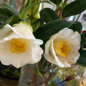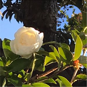 1/2 今日のお花 椿 侘助(わびすけ) 薮椿(やぶつばき) 白い大きな花の椿 乙女椿(おとめつばき)