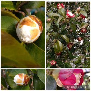 今年はよく咲いてます🧡🤍 🧡🤍白いヤブツバキ?