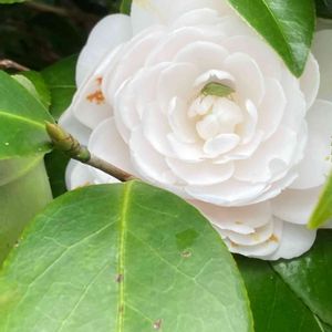 白い椿❣ 少し高い所に咲いていました〰️💕(^^)/ (*˘︶˘*).。.:*♡🤍🤍🤍💖