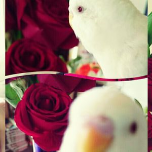 インコ達の会話 part★3 黄 「おい!飼い主!いい匂いする これは何なんだ!教えろ!」 カゴに飛びつく。 青 「そうだそうだー!教えろ教えろ~!」 黄色とグルになって飼い主を見つめる。 私「インコちゃん達、それはスイートピーっていう お花なんだよ(^-^)」 お花の名前と、食べ物ではないことを教えてあげました(^-^)