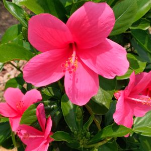 2投稿目!(^_-)-☆ 小ぶりなハイビスカス🌺 一気に咲いてきました!😍 蕾も沢山あって…🎶!!