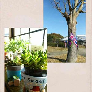 ポカポカ青空の下☀️💕 近くで開催のマルシェへお出かけ♪♪ 多肉ちゃんに手作り鉢に かわいい小さいお友だち🌱をお連れして 窓辺でほっこり(*´ω`*)