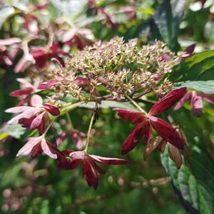 コバノカモメヅル(小葉の鴎蔓)キョウチクトウ科カモメヅル属 ↖ コバノカモメヅルの実がなっていました。 後ろには弾けた実もあります。 まわりのお花達は8月25日に撮影しました。 白いお花はアズマカモメヅルと呼びます。