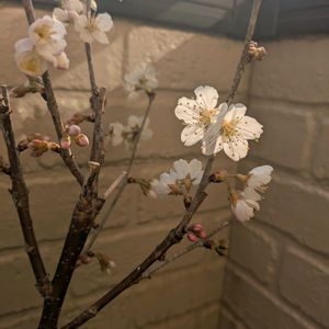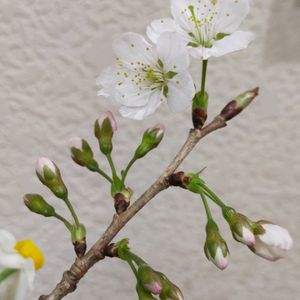 ホワイトデー前後に咲き出す 我が家のサクランボの花🌸 昨晩、見つけて 一枝 花瓶に挿しました。 夜桜が綺麗でした✨ 樹齢25年くらい。 そろそろ寿命らしく 去年から花数が減りました。 🏷金曜日の蕾たち