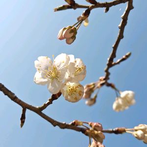 実家のさくらんぼ🍒のお花が 満開になりました🌸 昨日の雨で、少し散ったようです💧 今年は、さくらんぼ🍒の実は 成ならないみたいだね😂 🏷️つなぐ、つながる