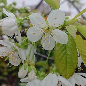 こんちは〜😊 こちら福岡は、曇り空☝️ せっかくのお休みだというのにがっかり😫 小さなお庭のさくらんぼの木🍒 お花が咲いてました😁 さくらんぼ🍒も沢山実りますように😉