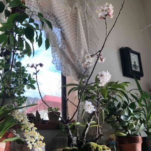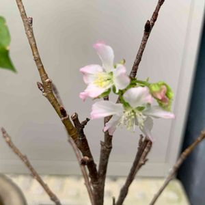 さくらんぼ🍒(佐藤錦)の花は例年ソメイヨシノに比べると1ヶ月以上早いけど、今年は更に早く咲きました。 可愛い花🌸なので玄関で楽しんでます✨😍