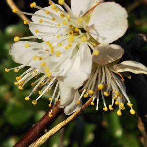 さくらんぼの花 暖地用さくらんぼです。 上手く実がつくか心配。 自家受粉できる 品種らしいのですが? 筆で念の為受粉作業。