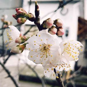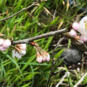 去年買ったさくらんぼの花が咲いてました☺️🌸 もう春だなぁ〜🌸🌸🌸🌸