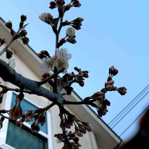今日2度目の投稿になってしまいました🙇♀️ 夕方になってシャッターを閉めようと思ったら、小さな小さな庭の桜の花が咲いていた🌸 高ーい場所に咲いているから背伸びしてスマホの精一杯の拡大でこの大きさにしか撮れなかった💦 植えて今年で23年目。 今年もたくさんさくらんぼ🍒(佐藤錦)が実りそう💕
