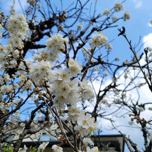 🍒2年前に 思い切って剪定した さくらんぼ🍒 昨年は寂しかったのですが、今年は復活しました\(^o^)/ 🌸開花の始まり🌸 ぷっくり花芽もたくさん🥰 すごい生命力…🌟🌟🌟 地中から根が広がっていって違うところから芽🌱が出てきてしまうのが少し悩みかな…🤔