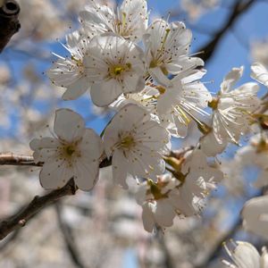 【万葉の中庭シリーズ:🍒さくらんぼの花編】 🍒さくらんぼの花; cherry blossom🌸 この桜の花は我が万葉の中庭に植栽している🍒さくらんぼの花を撮ったものデス🐶 周辺では、木通:アケビの花や羽衣ジャスミンの花蕾などの蔓が絡み合っています🐶 📝さくらんぼの花言葉〈良心〉は小さな実が象徴する、心の声に耳を傾け誠実に行動するという精神を教えてくれます。 🗒️さくらんぼには他にも「善良な教育」「上品」「幼い心」、「あなたに真実の心を捧げる」といった花言葉があり、その一粒一粒が可愛らしい果実に見合ったメッセージを伝えています。 【一首献上】 「青空に さくらんぼ花 立ち咲きて 傍らに添う アケビの花や」 @訳意; Against the backdrop of a clear blue sky, the cherry blossoms are in full bloom, and beside them are entwined Akebia flowers and Hagoromo Jasmin buds. ;晴天の青空を背景にして、満開のさくらんぼの花が咲き誇り、その傍らにはアケビの花や羽衣ジャスミンの花蕾が絡み合っています。 📝サクランボ(桜ん坊)または桜桃(おうとう)は、バラ科サクラ属サクラ亜属の果樹であるミザクラ(実桜)類の果実。 食用にされ、旬は初夏の6 - 7月ごろ。 サクラの果実の中でも、セイヨウミザクラ(西洋実桜)を通称サクランボとよんでいる。 【豆知識】 📝木を桜桃、果実をサクランボと呼び分ける場合もある。 生産者は桜桃と呼ぶことが多く、商品化され店頭に並んだものはサクランボとよばれる。 サクランボは、桜の実という意味の「桜の坊」の「の」が撥音便となり、語末が短母音化したと考えられている。 花を鑑賞する品種のサクラでは、実は大きくならない。 果樹であるミザクラには東洋系とヨーロッパ系とがあり、日本で栽培される大半はヨーロッパ系である。 品種数は非常に多く1000種を超えるとされている。 果実は丸みを帯びた赤い実が多く、中に種子が1つある核果類に分類される。 品種によって黄白色や葡萄の巨峰のように赤黒い色で紫がかったものもある。 生食用にされるのは甘果桜桃の果実であり、日本で食されるサクランボもこれに属する。 その他調理用には酸味が強い酸果桜桃の果実が使われる。 ほとんどの甘果桜桃は自家不和合性があり、他家受粉が必要である。 受粉には最低限自家不和合性遺伝子型(S遺伝子型)が異なる必要があり、異なる品種なら何でも良いというわけではない。 ごくわずかだが自家結実する品種もある。 一方、酸果桜桃は全ての品種に自家和合性がある。 栄養価は、ビタミンC、カリウム、葉酸が比較的多く、リンゴ酸、クエン酸、ブドウ糖、果糖なども含んでいる。 《歴史》 サクランボは有史以前から食べられていた。セイヨウミザクラ(甘果桜桃、Prunus avium)はイラン北部からヨーロッパ西部にかけて自生していた。 また別の種であるスミミザクラ(酸果桜桃、Prunus cerasus)の原産地はアジア西部のトルコあたりである。 原産地の推定は、1世紀の古代ローマの博物学者プリニウスが著書博物誌に書いた説明に基づく。 これによると、古代ローマの執政官ルクッルスが第三次ミトリダテス戦争で黒海南岸のケラソス(Kerasos、現在のトルコギレスン (Giresun) )近くに駐屯した際、サクランボの木を見つけ、ローマに持ち帰ったという。 サクランボの木が属するサクラ亜属の学名Cerasusは、ケラソスのラテン語表記である。 なお、逆にサクランボにちなんで町の名が付けられた可能性もある。 ただし、イギリスで青銅器時代のサクランボの種が発掘されていることから、19世紀のスイスの植物学者アルフォンス・ド・カンドル (en) は、ルクッルスがコーカサスから持ち帰ったのは、セイヨウミザクラの一栽培品種だったとの仮説を述べている。 この2品種は黒海沿岸からヨーロッパ諸国へ伝わり、特にイギリス・フランス・ドイツで普及した。 名称がノルマン人によってシェリーズ (cherise) となり、イングランドに渡ってシェリー (chery) となり、英語のcherryになったといわれている。 16世紀ごろから本格的に栽培されるようになり、17世紀にはアメリカ大陸に伝えられた。 一方、中国には昔から華北・華中を中心に、カラミザクラ(シナノミザクラ、支那桜桃、 Prunus pseudocerasus)がある。 口に含んで食べることから一名を含桃といい、漢の時代に編纂された礼記『月令』の仲夏(旧暦5月)の条に「是月也,天子乃以雛嘗黍,羞以含桃,先薦寢廟」との記述がある。 江戸時代に清から日本に伝えられ、西日本でわずかに栽培されている。 これは、材が家具、彫刻などに使われる。 暖地桜桃ともよばれ、「桜桃」という名称は中国から伝えられたものである。 セイヨウミザクラが日本に伝えられたのは明治初期で、ドイツ人のガルトネルによって北海道に植えられたのが始まりだとされる。 その後、北海道や山形県を初めとする東北地方に広がり、各地で改良が重ねられた。 ✍️Works:Poetaster Kazan //筍歌人;藪中和堂 March 22,2024;past am 09:00’;📱shooting March 22,2024:past am 09:40';upload by Kazyan’s Green Studio