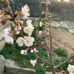 ポカポカ陽気で 🌸🌸🌸あらら〜 昨日の🍒の蕾が 咲きだしていました🥳 あっという間の 二分咲き🌸🌸💓