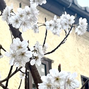 こんにちは🎶 我が家のさくらんぼ🍒の花🌸が咲きました❣️ 今年は大きく枝を切ってしまったので、たくさんの実は期待できませんが、半日陰の小さな庭でよく育ってくれてます🤗