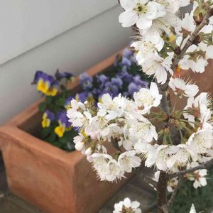 3/7の桜ん坊。 鉢の中で沢山開きました🌸 今年は実も沢山なるといいな🍒