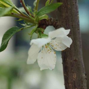 鉢植えのさくらんぼ さおりちゃん 2年目の春 花がひとつだけ 咲きました。