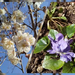 今日はとてもいい天気 🍒🌸の花も次々咲いています 地面では小さいながらも 芳香を放つニオイスミレ 眠くなる午後😪・・・ 長閑~