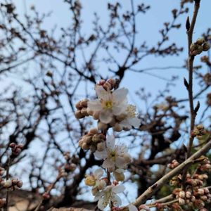 🍒サクランボ 暖地🍒 サクランボの花も咲き始めました🌸 ホームセンターで苗を買って来て3年、ようやくたくさんの花が咲きました。小粒のサクランボの実がなるようで、楽しみです😁