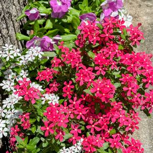 久しぶりのまとまった雨☔ 風が冷たくなり気持ちいい☺️ ラグんちのお花🌸 ①②は毎年お迎えしています♪ スーパーチュニアは1年ごと紫とピンク交互に おひとり様なのでアップで 切り戻し後、満開😍 花柄詰みが大変です💦 もう一度、切り戻さなきゃ ③キャンディ🍬みたいな千日紅がかわゆい🥰地植え組 もっといっぱい植えたかったなぁ
